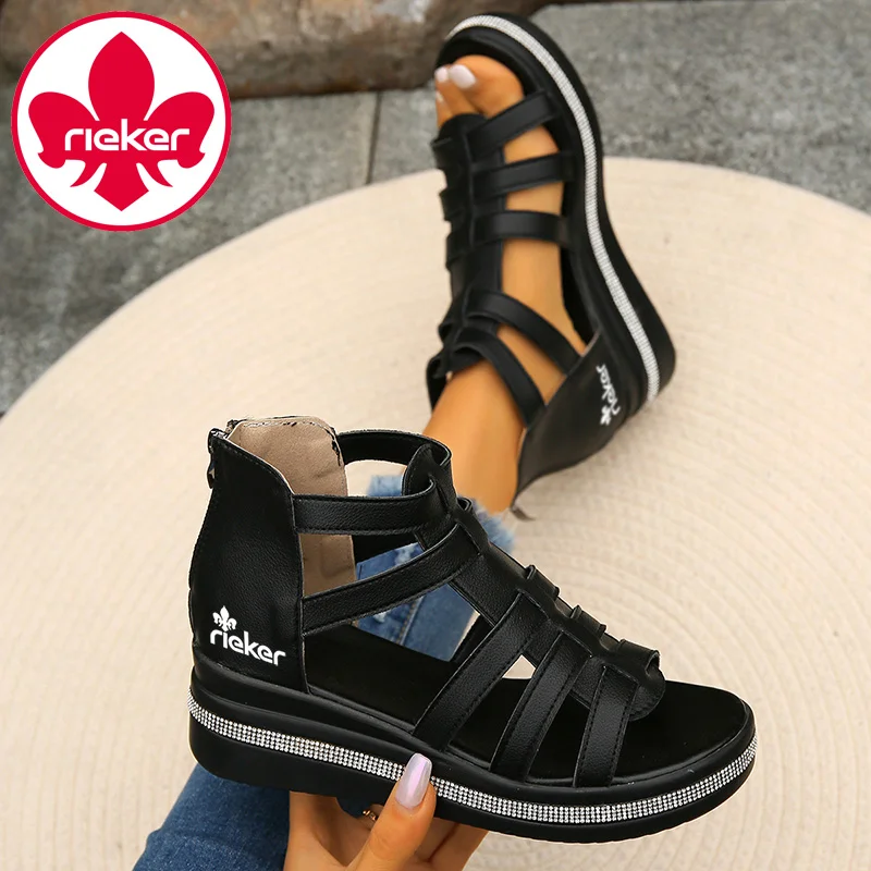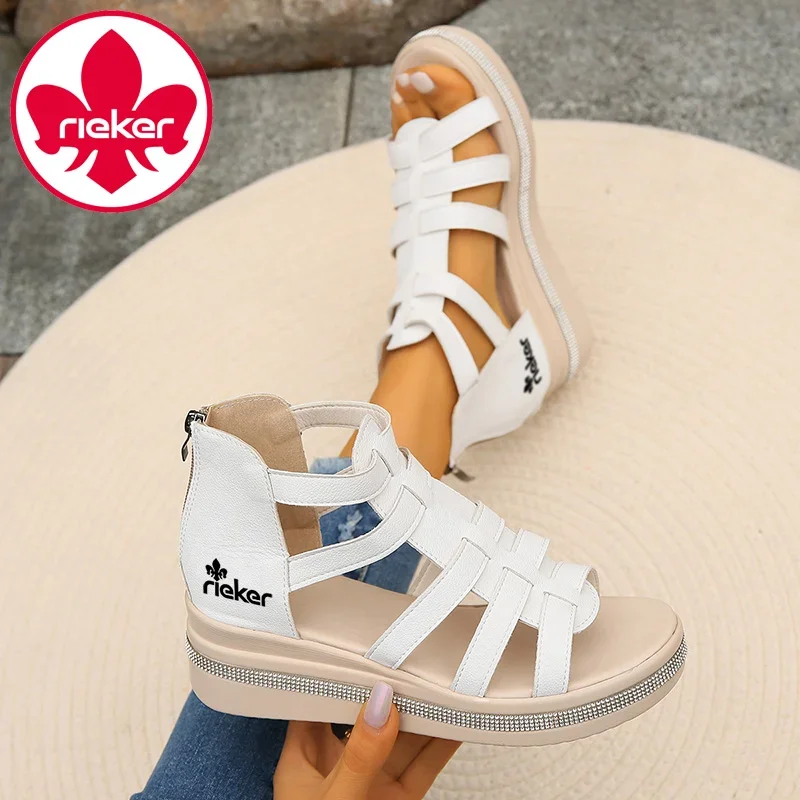 Chinelos femininos Rieker® Sandálias ortopédicas femininas Sandálias femininas de caminhada de verão, casuais e feitas à mão Sandália diferenciada com palmilha acolchoada e suporte de arco confortável Esta sandália é uma sandália atraente para o dia a dia que combina detalhes divertidos com conforto acolchoado para caminhar!