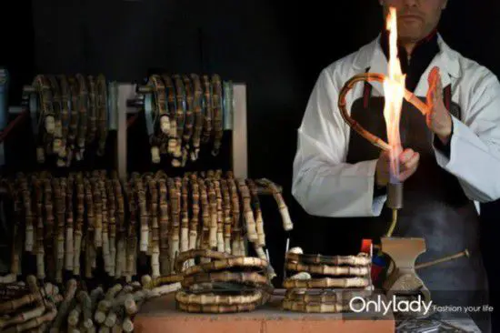 BAMBOO BAG (saco de bambu), o mais clássico é o cabo de bambu, que não é fácil de fazer. Precisa ser aquecido no fogo e depois dobrado com a mão. Só quando a resistência é perfeita, o arco pode ser perfeito. Portanto , cada alça de Bamboo Bag não é a mesma. Depois de dobrado, ele precisa ser deixado por um período de tempo com ferramentas especiais de modelagem e, em seguida, pintado várias vezes com tinta de material natural. E esses processos especiais e seleção de materiais são finalmente formados pela equipe de artesãos florentinos GUCCIO após repetidos testes e explorações. Até hoje, a produção de cabos de bambu ainda está estritamente de acordo com os padrões estabelecidos há mais de 60 anos, e o bambu usado agora é produzido em Sichuan, na China.