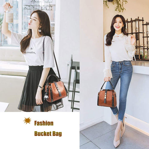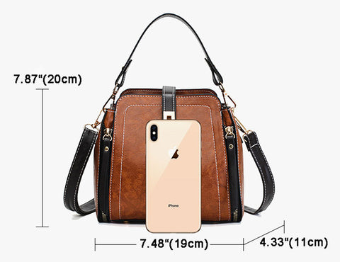 • MATERIAL: Bolsas femininas modernas feitas de couro PU de alta qualidade, grande capacidade e duráveis ​​para uso diário ou negócios. O fundo da bolsa possui quatro rebites de metal texturizados que protegem eficazmente contra o desgaste. Forro interno em poliéster marrom escuro.  Fechamento com botão de hardware e zíper.