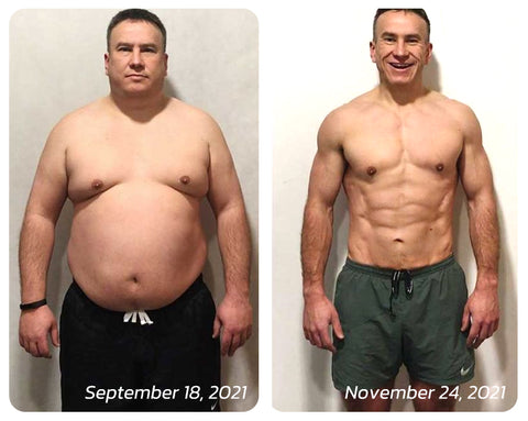 Rick Nieves submitted this photo of his journey using the EMS ChestDefy Reduction Microcurrent Massager. Congrats on the success!