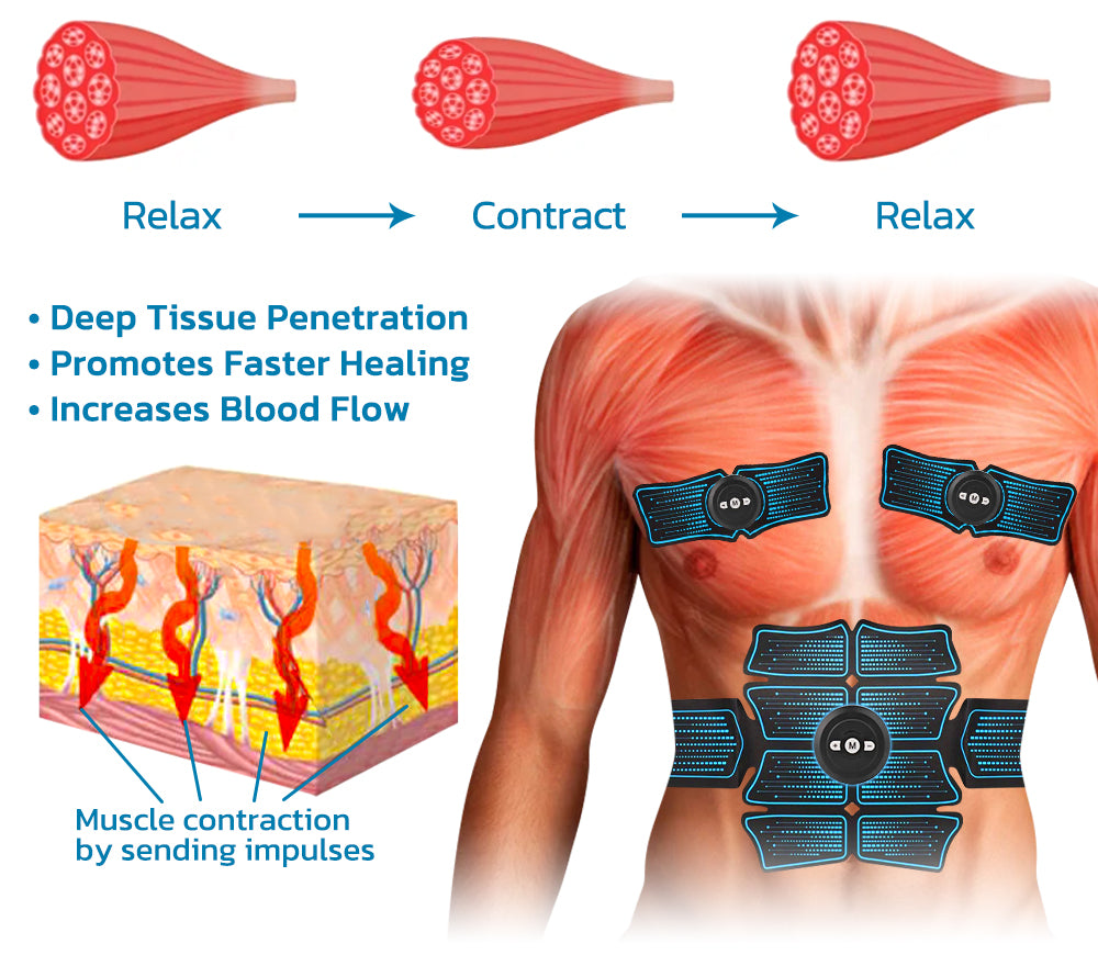 Your muscle first burn through stored glycogen for energy. EMS ChestDefy Reduction Microcurrent Massager uses a pulse technology that is scientifically proven to tighten & restore muscle tone that greatly helps to achieve a slimmer figure.