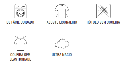 - Etiqueta macia - a etiqueta é impressa na camiseta para máximo conforto