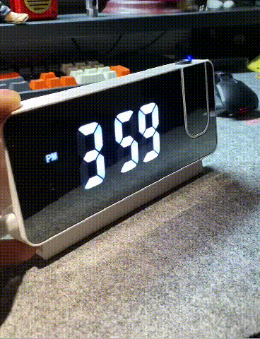O relógio despertador LED tem várias funções, pode exibir a hora, data e temperatura, e pode ser projectado a um ângulo amplo de 180 graus. É também um prático relógio despertador.