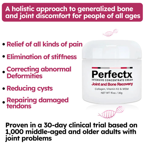 Perfectx is a highly effective pain relief program that provides fast pain relief and solves orthopedic problems safely and effectively within two weeks. It excels in the treatment of osteoarthritis, rheumatoid arthritis, bursitis, tendonitis, osteoporosis, gout, carpal tunnel syndrome, ligament sprains and strains, bunions, and tennis elbow with a 99% success rate.