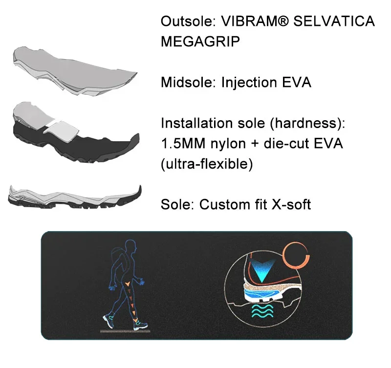 Design de ajuste personalizado: Adapta-se precisamente ao formato do pé, garantindo um ajuste personalizado.