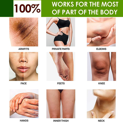 Contém ingredientes poderosos e eficazes que trabalham profundamente na pele para reduzir manchas escuras, manchas de gravidez, manchas de sol, hiperpigmentação, cicatrizes, descoloração, melasma e tom irregular no rosto e no corpo para dar a você um novo tom de pele uniforme. Perfeito para manchas, marcas de nascença, marcas de pele, etc. no rosto e no corpo.
