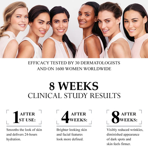 - Fornece uma dose de umidade para restaurar a elasticidade da pele, reduzindo linhas finas e rugas