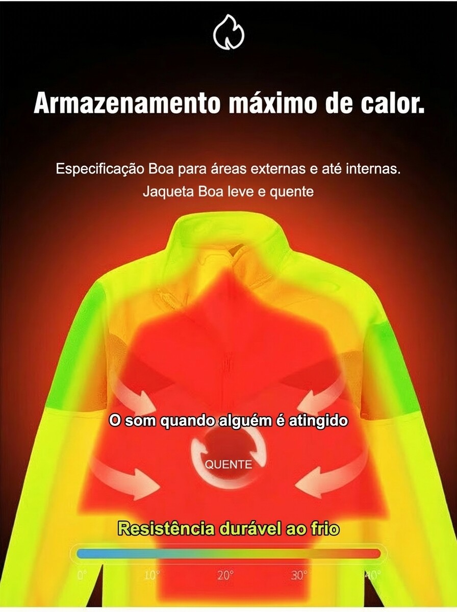 - Eficiência de aquecimento: Nossa jaqueta Sherpa ultraquente se destaca por sua eficiência de aquecimento superior, garantindo que você fique aconchegante e aquecido mesmo nas condições climáticas mais frias.